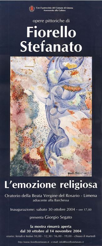 corsa al consumismo, la sempre più ampia divaricazione del mondo ricco dal mondo povero, hanno spento le grandi voci tonanti, smarrito i colori esaltanti, appiattito le forme esemplari, “monumentali", e reso eloquenti quasi solo il silenzio dell’introspezione, il vuoto della solitudine, le luci e le ombre della visione intima, il segno costruttivo piuttosto che descrittivo, il concetto astratto, e povero nell’evidenza del naturale, piuttosto che la forma fantastica resa sensibile. E ora è come se Fiorello Stefanato tornasse balbettando a comporre un discorso di recupero e di ridefinizione di una sensibilità religiosa contaminata, contagiata, restituendo, appunto, un “legame” diretto, sensibile, narrato e figurato col mondo ultraterreno, con il significato salvifico della Maternità, della Crocifissione, della mediazione ecclesiale. Naturalmente, la maggior parte delle sue opere si intitola “Studio per ...” ed è preferibilmente su carta o cartoncino, apparentemente come se si trattasse di elaborati iniziali, di progetti, di cartoni preparatori. ma in realtà si tratta di esplorazioni sensitive, emotive ed intellettive della plausibilità e necessità di una figurazione restitutiva del corpo sensibile, delle risonanze del corpo come riabilitazione di un sistema di valori, di un sistema di exempla, di una teleologia e di una teologia fondanti una morale che oggi appare sempre più limitata alla sfera individuale, scelta personale piuttosto che corale, cioè di una collettività che si riconosce in una Chiesa. In questo senso Fiorello Stefanato invita a una nuova testimonianza, sentendosi profondamente coinvolto nel religioso e nel sociale e ritrovando, nel fare pittura, nel segno e nel colore, la sua più adeguata forma di comunicazione. Anche dove pare liberarsi dall'esigenza di delineare le figure per silhouettes di luce e liberamente compone complesse, pulsanti, ferventi, e anche sensuali compenetrazioni di forme, più surreali che astratte, si avverte una volontà di comunicazione effettiva, in cui l'arte diventa ponte, terreno comune di esperienza, di sentire, del mettere in gioco le proprie convinzioni e ragioni, ma soprattutto